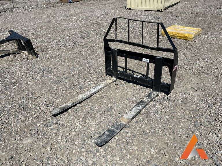 "Unused" 48" Damaged Kivel 3500# skid steer pallet fork attachment, top of frame is bent