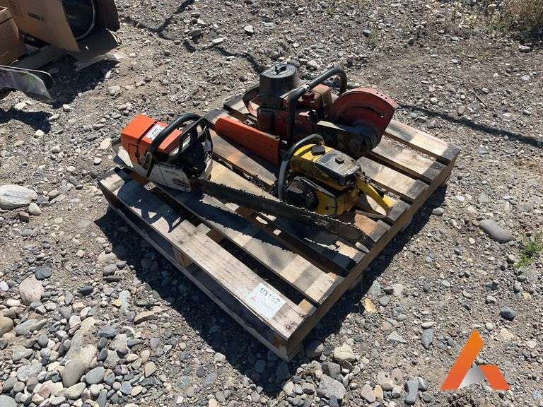 Homelite demo saw poor condition no wheel would not start after several pulls, McCulloch Pro Mac 10-10 chainsaw Oregon 19 ' bar would not start after several pulls, Misc 31 ' chain, Stihl 044 chainsaw, 24" bar, serial # 119320724