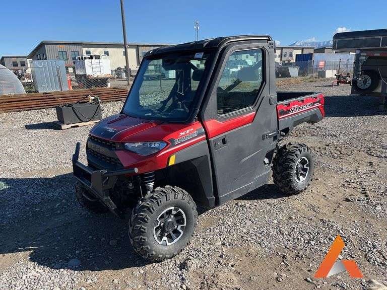 2018 Polaris XP1000 Ranger, ODO 8193 miles, hrs: 716, Manual dump box 37"L x 54"W, Enclosed cab, heat, ac, power steering, lights, windshield wiper, Dual overhead Cam, Tires AT 26x9-12, VIN 4XARRY999J8538731, Delayed Title.