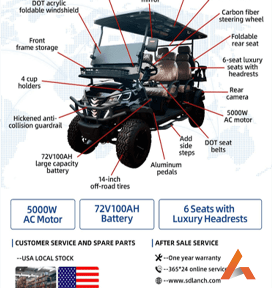 "Unused" 2025 SDLANCH Golf Cart SDLGC100 Sdlgc100 Golf Cart, Ceiling Electrophoresis, 10" Display With Reversing Image Andusb Charging Port, Equipped with Tool Kit, Rearview Mirror, Dot Acrylic foldable Windshield, Carbon Fiber steering Wheel, Foldable Rear Seat, Front Frame Storage, 6-Seat Luxury seats with Headrests, 4 Cupholders, Rear Camera, 5000Wac Motor, Thickened Anti-Collision Guardrail, ADC Sidesteps, D0T Seatbelts, 72V100Ahlarge Capacity battery, Aluminum Pedals, 14-Inchoff-Road Tires, 72V100Ahbattery, 6 Seats With luxury Headrests, 5000W Ac Motor, Assembly Required