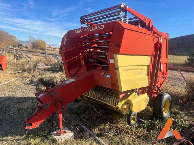 1986 New Holland 849 Round Baler, 5X4 max bales, 540 pto, 5'W pickup, twine only, hydraulic controls, tires: 9.5L-15SL, SN: 669621
